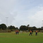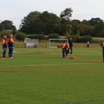 Als erstes stellten wir uns der Aufgabe Kraft. Diese mussten wir in der Übung Kugelstoßen unter Beweis stellen.